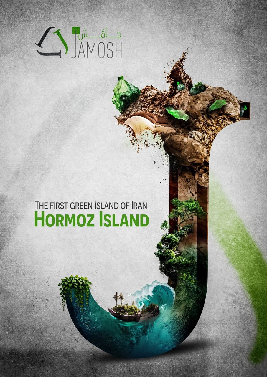 پوستر برگزیده «جامُش» با هدف ارائه بیانیهای بصری از مأموریت این استارتاپ طراحی شده است؛ مأموریتی که بر حفاظت از اکوسیستم منحصربهفرد جزیره هرمز، مدیریت اصولی پسماند و حرکت بهسوی توسعه پایدار تمرکز دارد. در طراحی این اثر، ترکیببندی مدرن، بهرهگیری از عناصر فرهنگی بومی و استفاده هدفمند از رنگهای جسورانه، در خدمت انتقال پیام حفاظت از محیطزیست قرار گرفته است.
