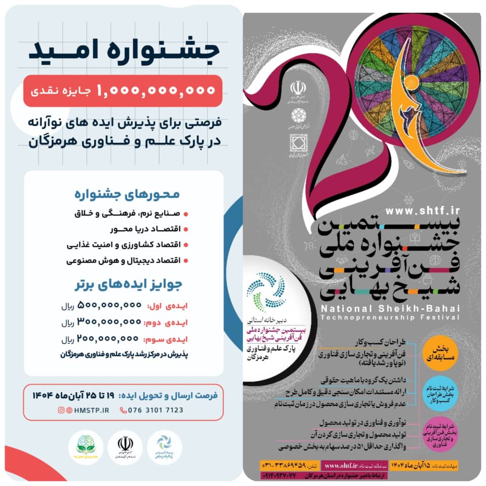 نصیری خاطرنشان کرد: مهلت ارسال ایدهها از ۱۹ تا ۲۵ آبانماه ۱۴۰۴ است و امیدواریم جوانان این فرصت را از دست ندهند.